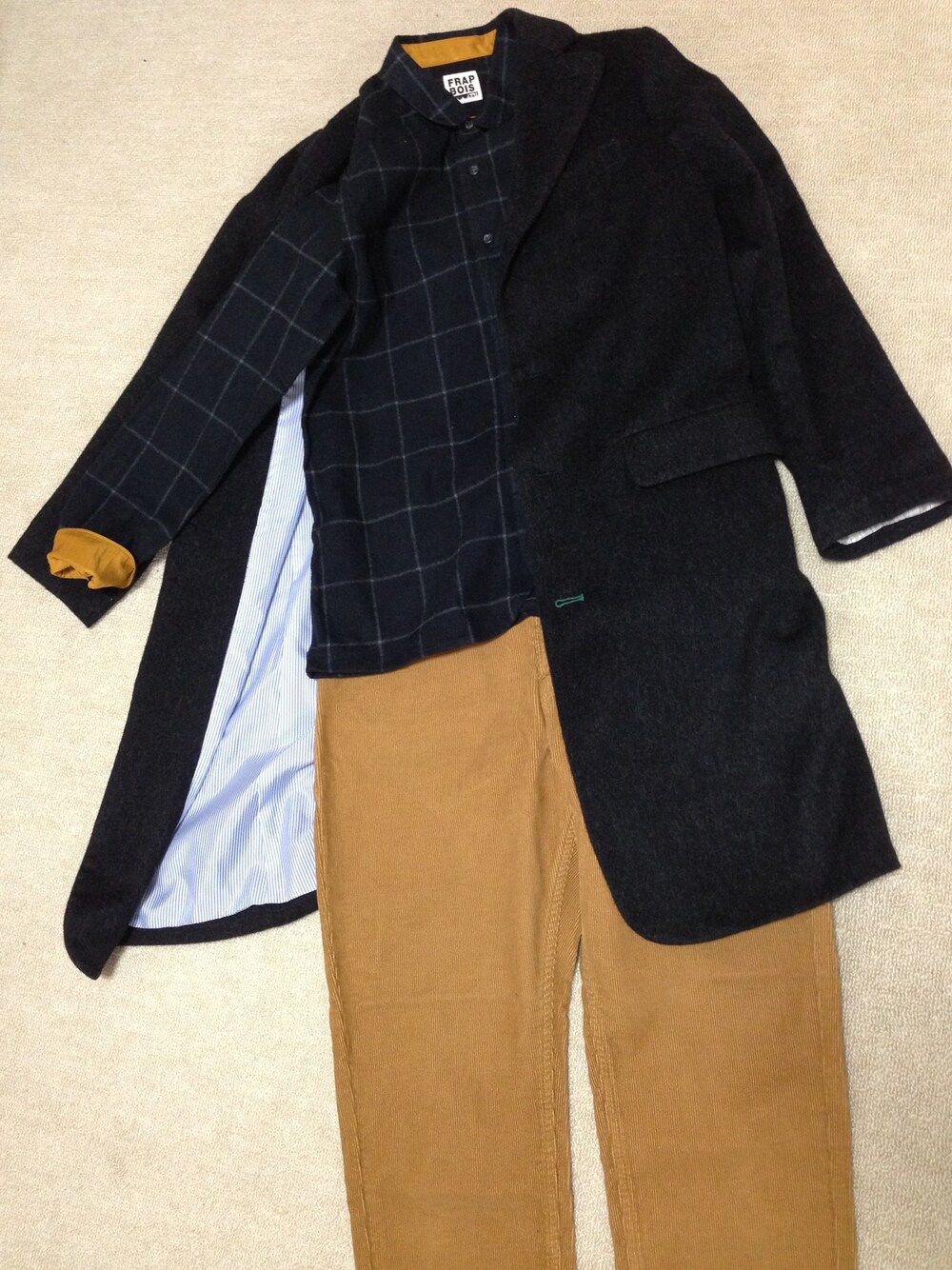チェスターコートデビュー!∩(・ω・)∩ こうやって合わせようかなあ、なんて、並べて見てる。。。 繁忙期です。。。