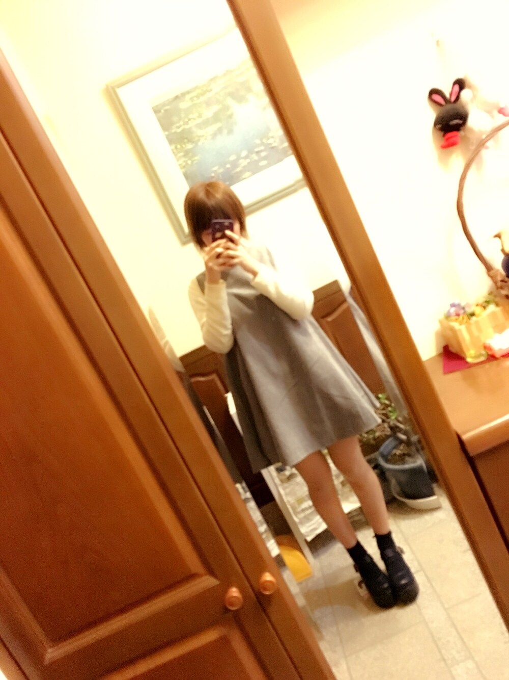 元旦コーデ。 シンプルにグレーのワンピース。