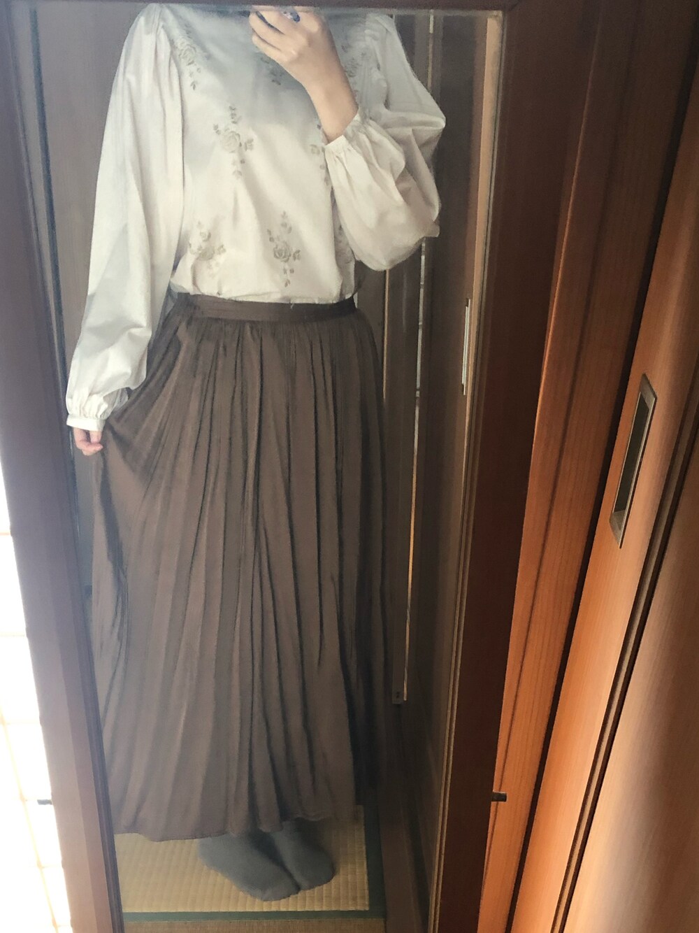 秋コーデ🍂 薔薇が刺繍してあったり袖がふわっとしてたりでかわいいブラウス🪡
