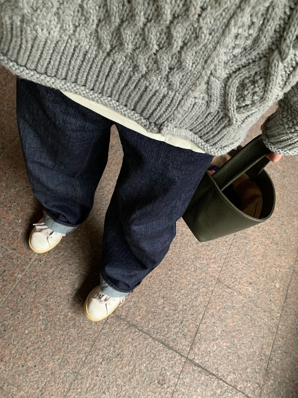車移動からの館内移動であれば、ちょうどいい服装。 インナーカットソーはUNIQLO×Mame Kurogouchi。ほんとに暖かくなる。