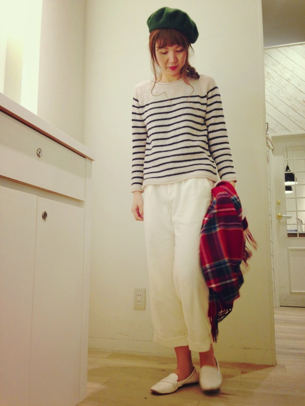 クリスマスぽくないコーデになりましたが、、、 白コーデにクリスマス色を小物で差しました🎄🎄🎄 ステキなXmasをお過ごしあそばせ〜💜💛💚💜 🎅🎄🎄🎄🎄🔴🎁🎁🎅🎁🎁🎄🔴🎄🎄🎄🎅