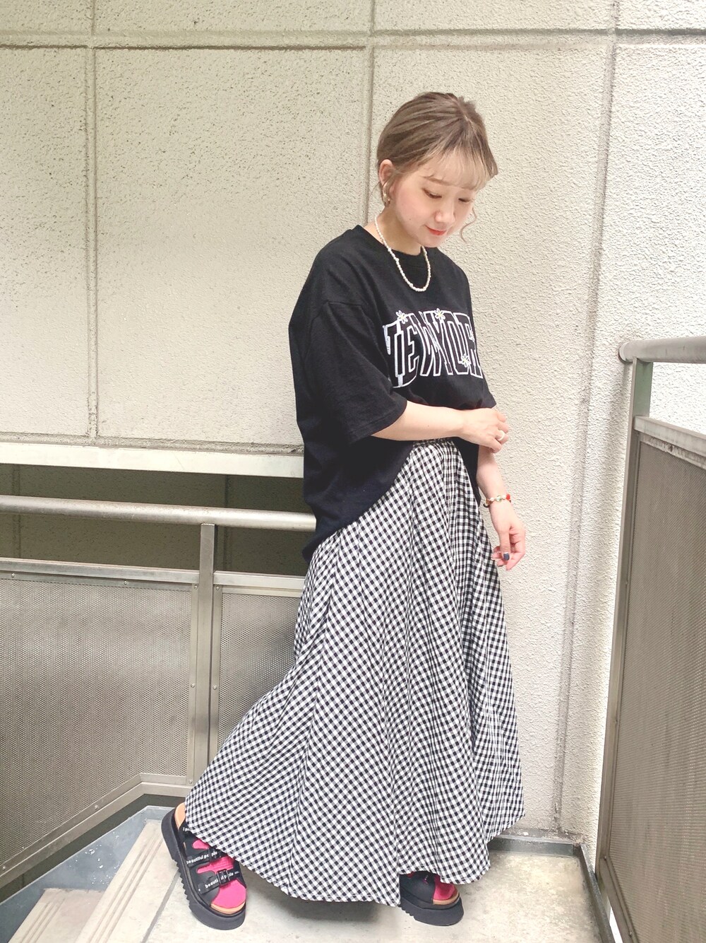 sumireのTシャツ/カットソー「アーチロゴフラワー刺繍Tシャツ」を使ったコーディネート