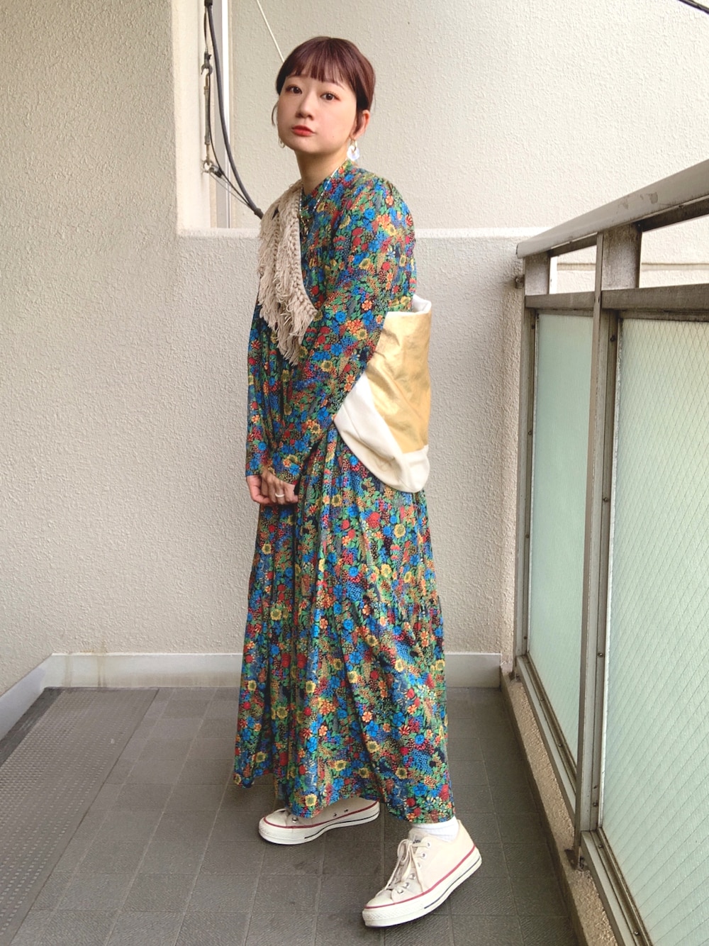 sumireのワンピース「ボヘミアンフラワーワンピース」を使ったコーディネート