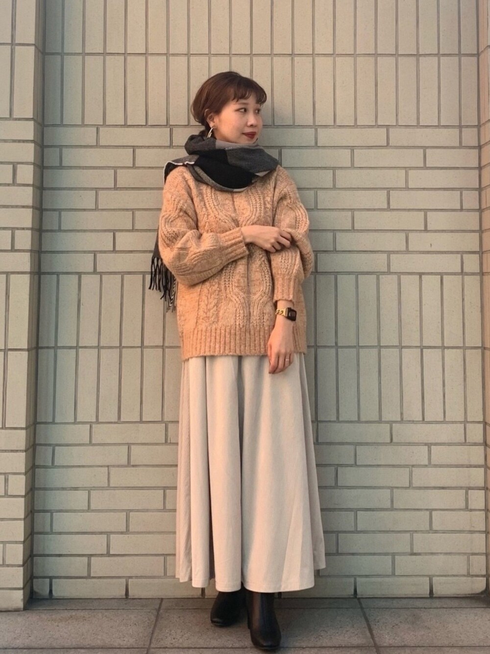 ayakaのニット/セーター「3.5GミックスBIGケーブルプルオーバー」を使ったコーディネート