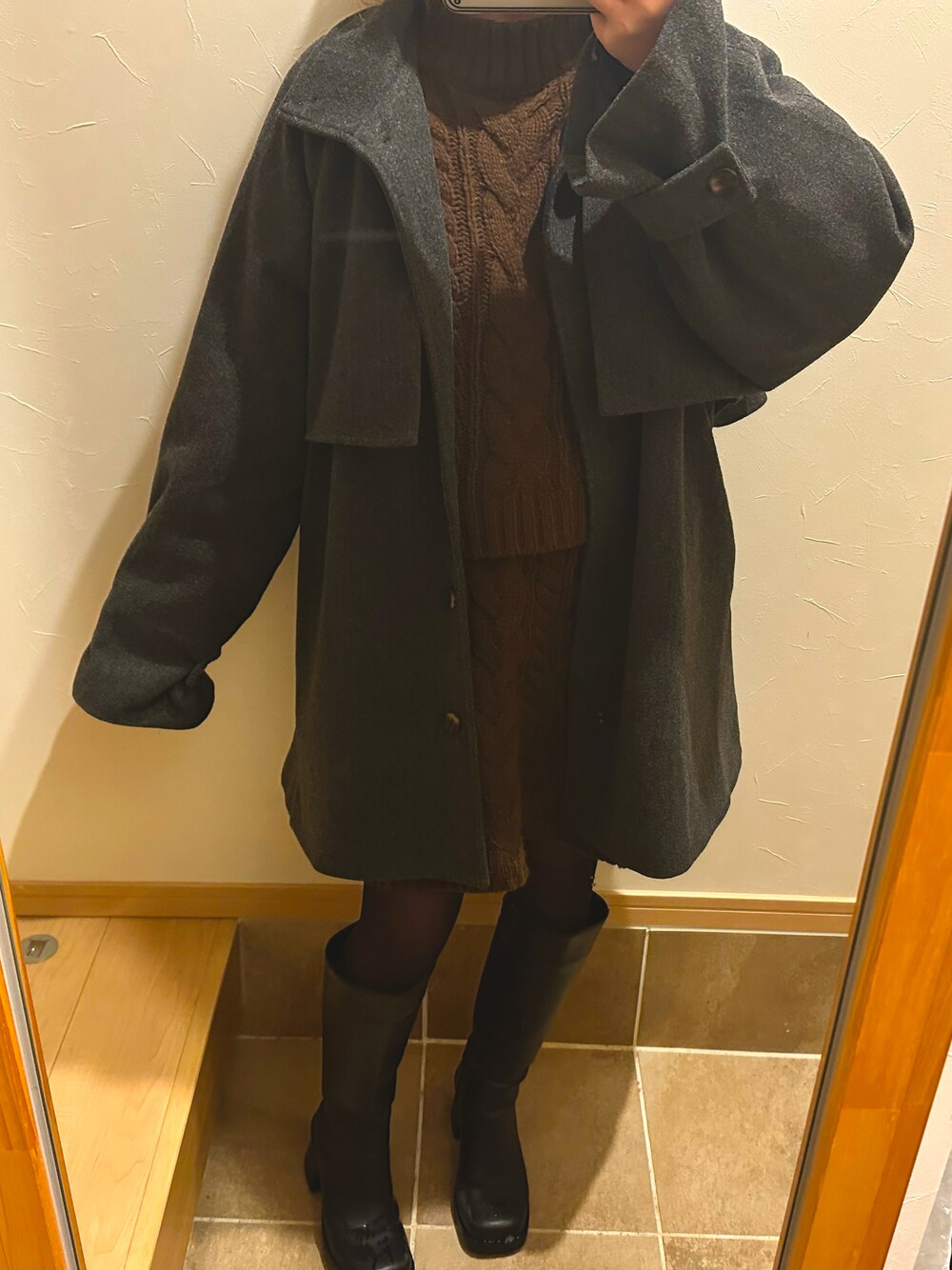ずーっと悩んで買ったコート 可愛いので満足。 セットアップのニット可愛い