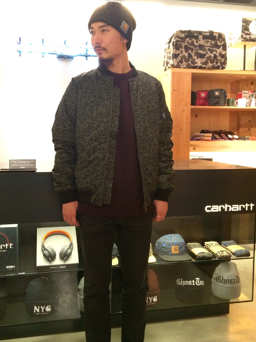 先週発売になったアイテムでのコーディネートになります! 今期おすすめアイテムでもありますMA-1のシリーズのASHTON BOMBER JACKET! 単色展開はもちろんなのですが、個人的にオススメなレオパード柄をKNITに合わせてみました! 最近急激に気温が下がってきているので、みなさん体調には気をつけて過ごして下さいね!! ほかにも色々新作が登場してきているので、是非お店にも遊びにきて下さい!お待ちしております。 諏訪間でした。 〒150-0001 東京都渋谷区神宮前4-28-25 Tel 03-3402-9810 Open 12:00 / Close 20:00 4-28-25 Jingumae Shibuya-ku Tokyo