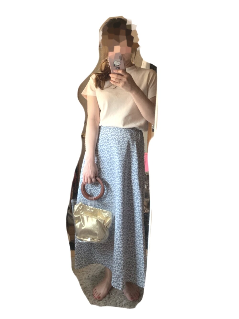 靴はTEVAを🙆♀️ GUコーデ、全部Sサイズです✨ スムースTの着やすいこと!めちゃくちゃお気に入り✊☺️ クリアバッグ の中身はゴールドの巾着を作って入れました🌼