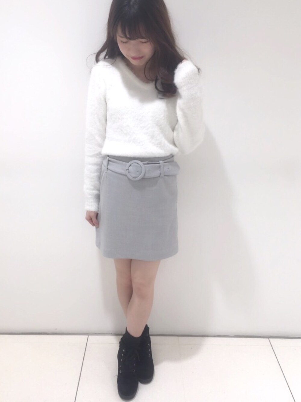シャギーニット✖ベルト付スカート♥