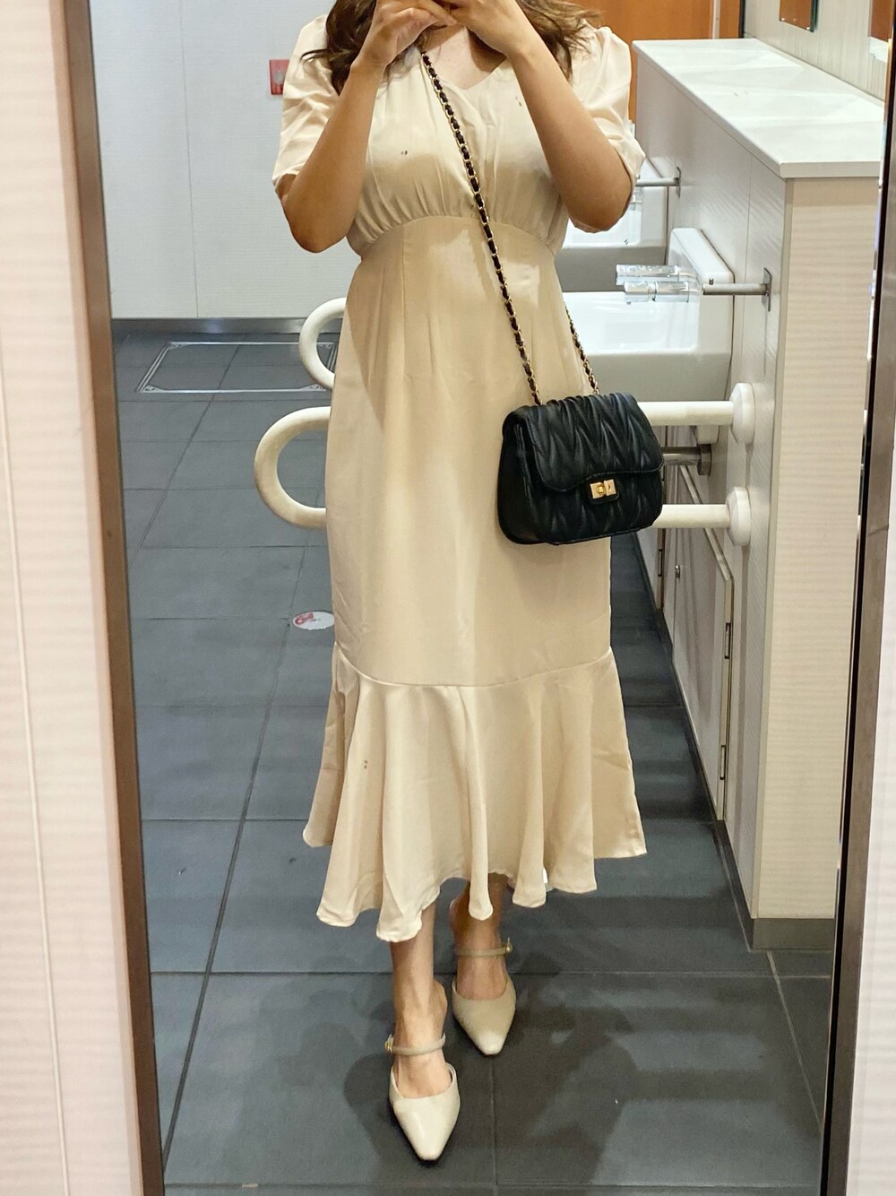 平日お休みの日、ランチに行った時の♡ お上品に見えるけど、実は全部プチプラコーデ。 ワンピース シーインで1980円 バッグ wegoで1980円