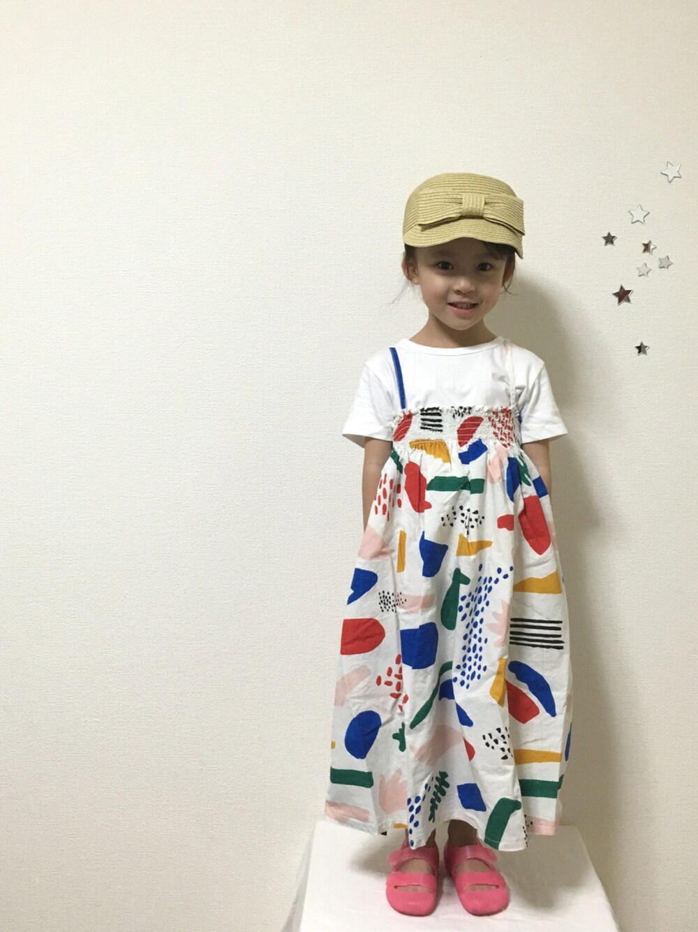 柄物ワンピースには、シンプルアイテムを合わせて♡ この帽子のビッグリボン、可愛いすぎ♡ 前回コーデのオファーありがとうございます♡