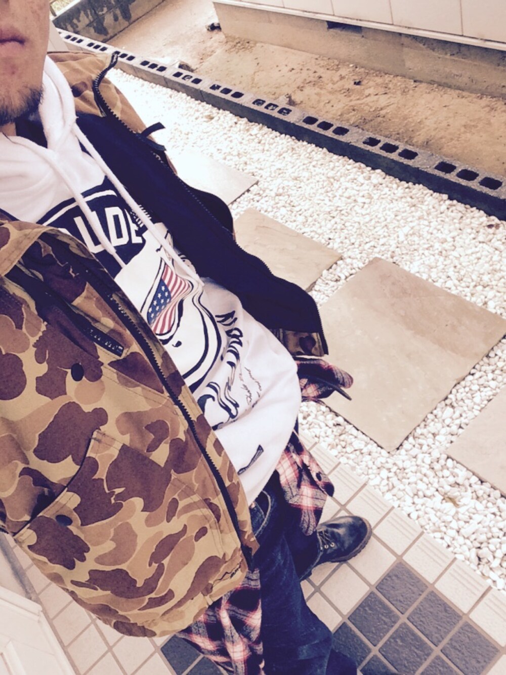 お久しぶりです^^ せっかくの休みなのに雨ということで1人でのんびりオシャレしてドライブしようと思いつき着てみました! 安定のジーンズとブーツは固定で大好きな重ね着と腰にチェック! 意外と良くて個人的にも驚きです笑 (これはアメカジでいいのだろうか…?)