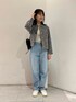【ジャケット】 オケージョン・普段用・お仕事用でお使いいただけるツイード素材のジャケット。 着丈が短く身幅は広めでボトムスのシルエットを選ばず合わせられます! 【パンツ】 ストレートデザインの春カラーデニム。 足首がスッキリ見える美シルエットです✨