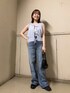 リボンが可愛いトップスは今からノースリーブで着ていただくも良し、秋冬はタートルネックと重ね着しても良し、オススメアイテムです🎀 デニムは脚長効果抜群なので個人的優勝パンツだと思います!✨ 新作のSALOMONも一緒に履いてみました👟 ちらっと見えるソールの丸みが可愛いです🤍 ぜひお試しください。