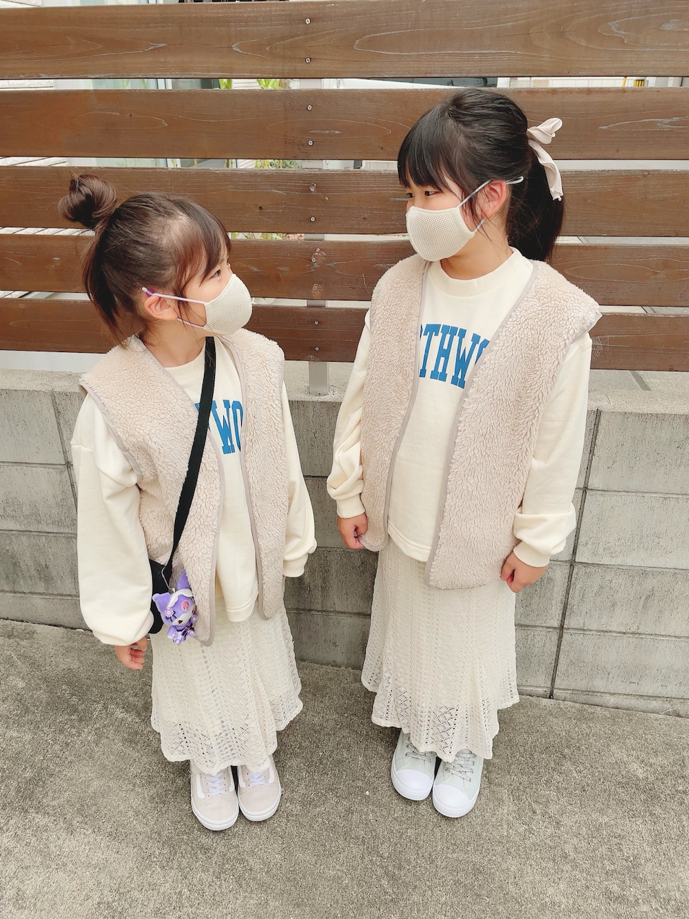 またまたお久しぶりです♡ 寒くなってきたので 秋服着れました♡ スウェットにボアベストが 大人っぽくてかわいすぎ♡ そんな我が家来週には三姉妹になります! よろしくお願いします♡