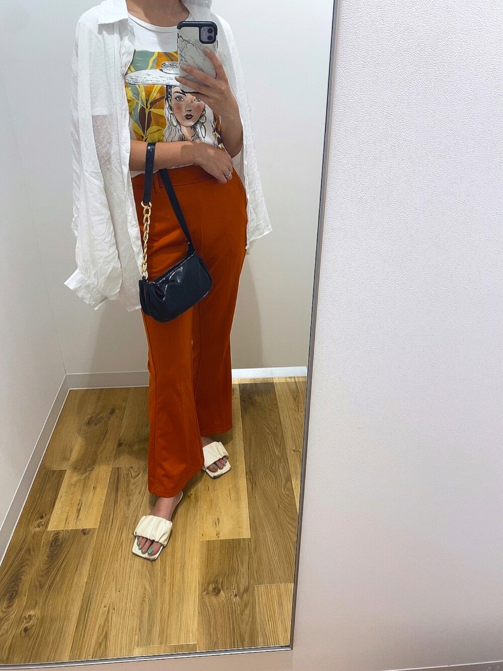テラコッタ寄りのオレンジパンツが可愛い🍊