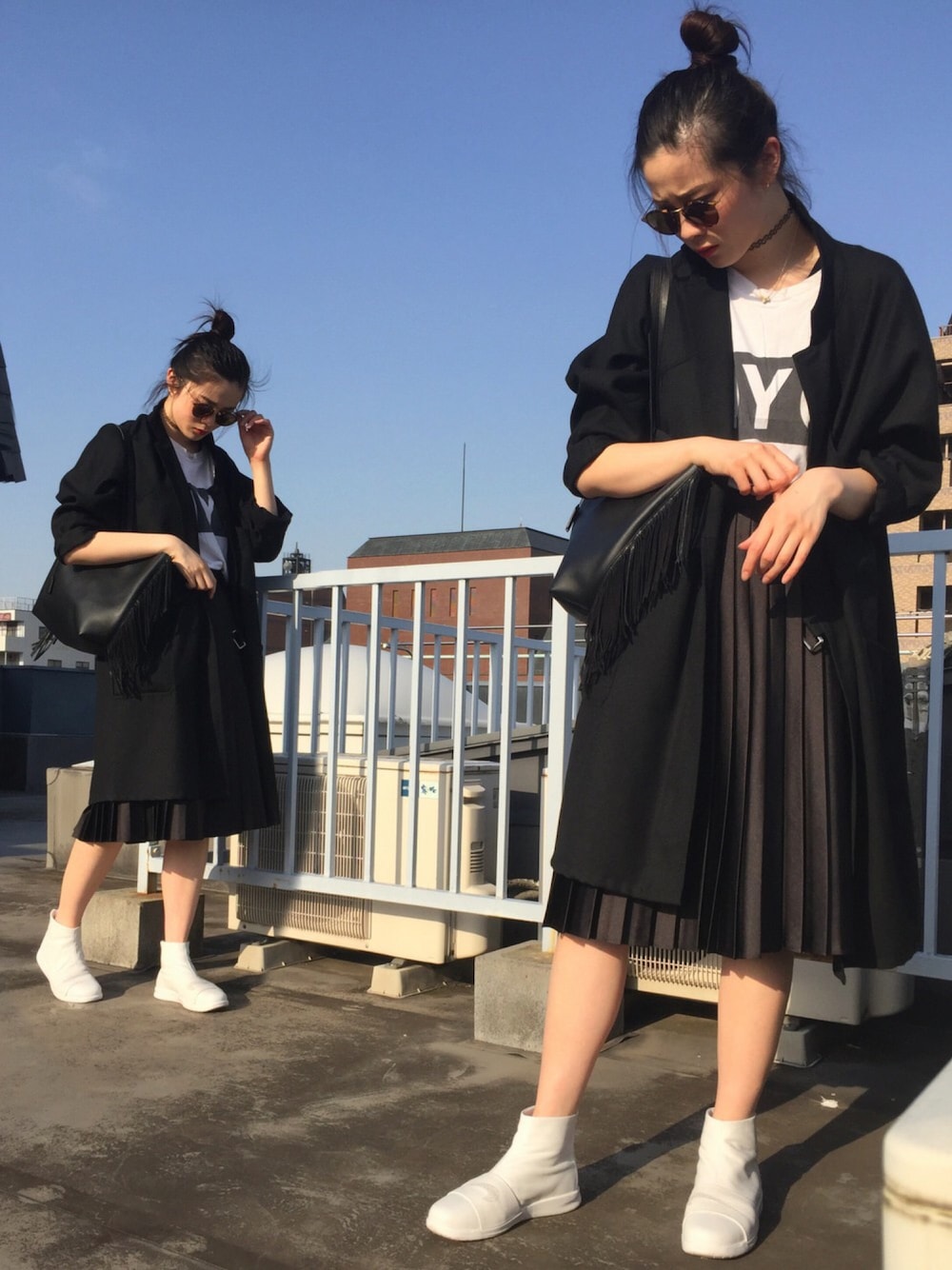 黒と白でクールまとめてみた。 やっぱり見て欲しいのは あしもと!!! NIKELAB BENASSI LUX BOOT カッコよすぎる可愛すぎる!! この靴に合わせるために 組んだコーディネーションです(笑)