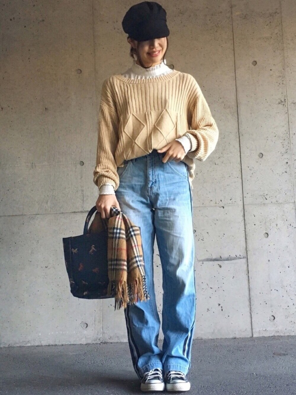 LIPSTARさんのケーブルニット、着回しです! ざっくり感が可愛い💕 肌触り柔らか💕