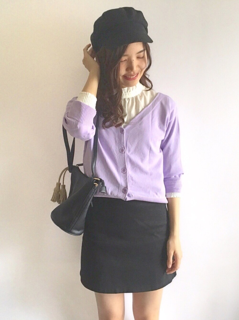 The Virgnia さんの 5wayニット 前ボタンにして、フリルブラウスとレイヤード! ショート丈ニットだから、Aラインスカートとの相性がとても良いです♡♡