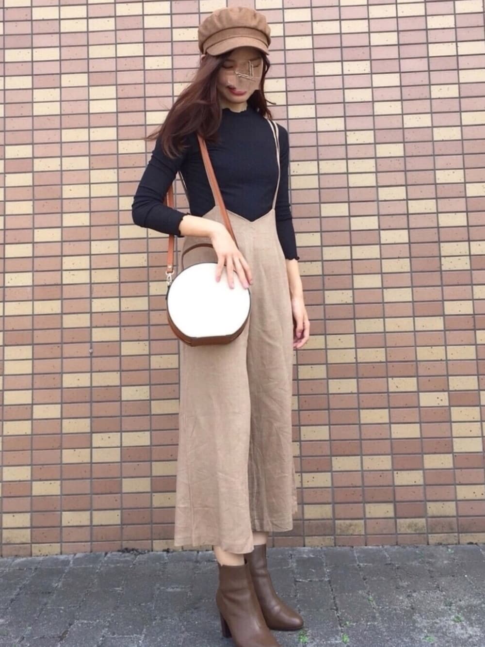 秋色 黒 × ベージュ🍂 素材が厚くないので、今の季節にちょうどいいです🍄 14プラスさんのキャスケット!色も形も可愛くてとってもお気に入り💕 ccas0279