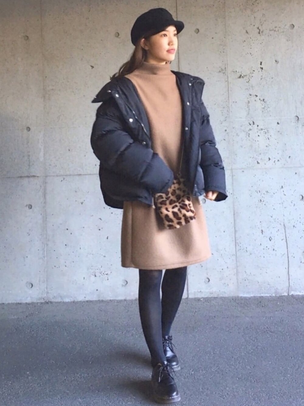 ずんのワンピース「起毛ハイネックパフスリーブワンピース」を使ったコーディネート