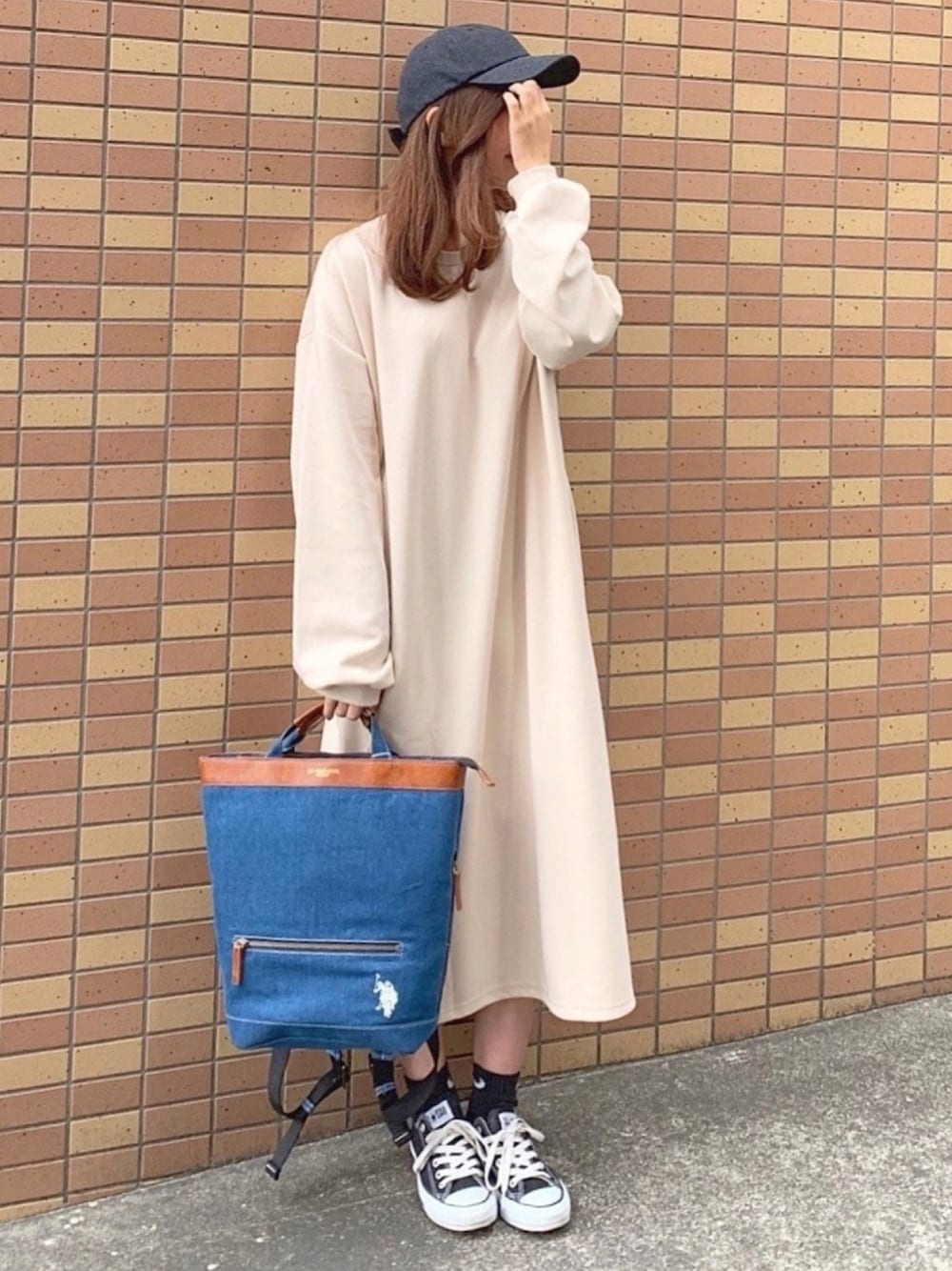 ずんのワンピース「ボリュームスリーブ ポケット付き 丸首 スウェットワンピース」を使ったコーディネート
