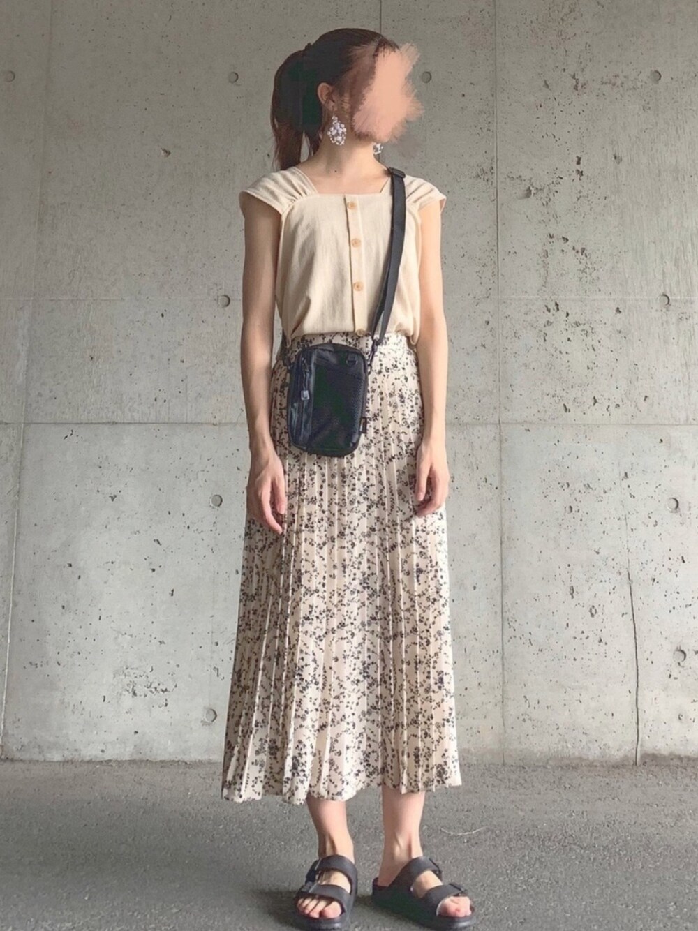 ずんのタンクトップ「ボタンポイントスクエアスリーブレス」を使ったコーディネート