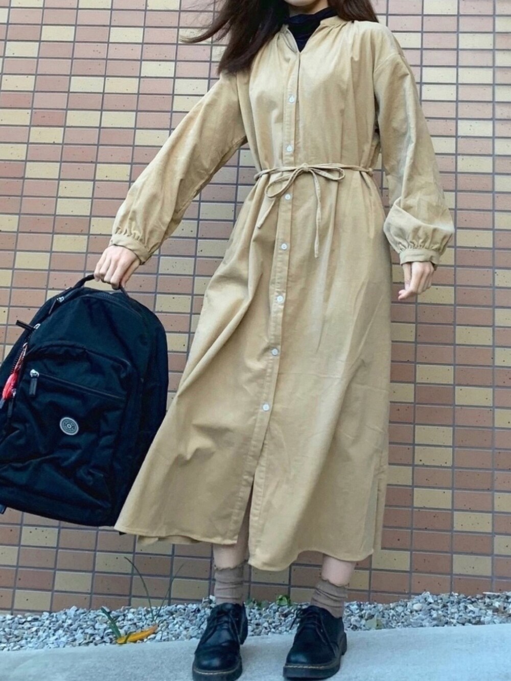 ずんのワンピース「AUNT MARIE'S コーデュロイバンドカラーシャツワンピース」を使ったコーディネート