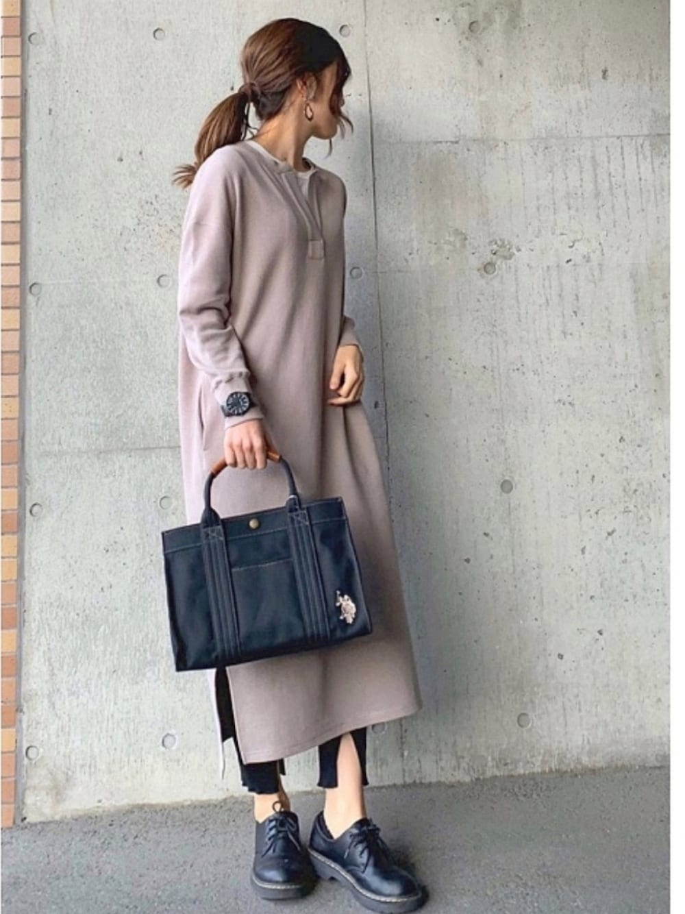 AZUL ENCANTO ワッフルスキッパーロングワンピース シンプルで着回しの効くワンピです。 カジュアルだけど、女性らしさもあるシルエットが好きです U.S.POLO ASSN. カバストートバッグS 四角いフォルムがカッコいい コーデ選ばず何にでも会うから春からの通勤バッグに決定