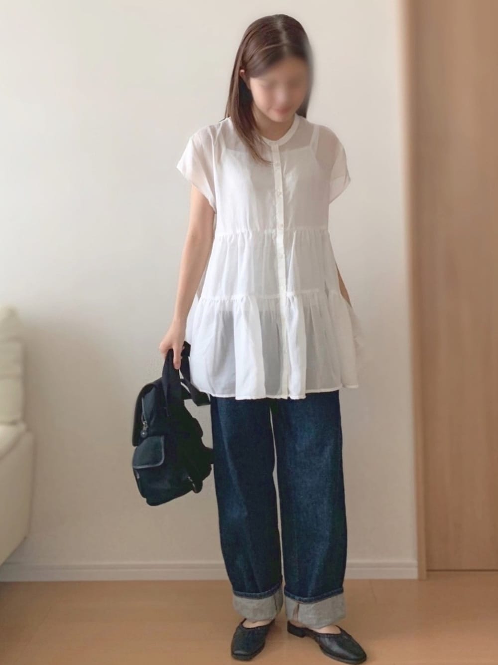 ずんのシャツ/ブラウス「ふんわりガーゼ 半袖シアーティアードブラウス」を使ったコーディネート