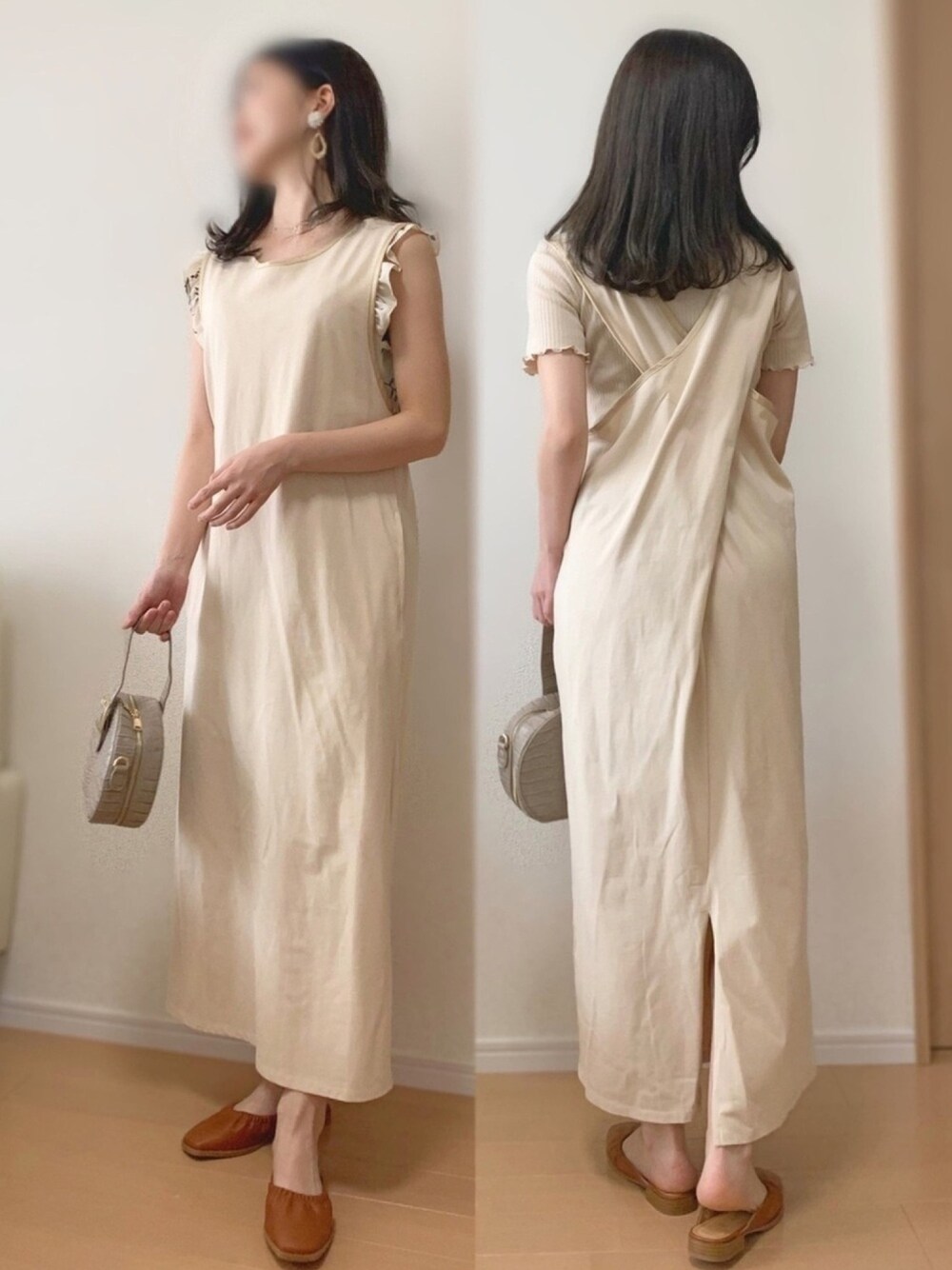 ずんのワンピース「バッククロス パイピングロングワンピース」を使ったコーディネート