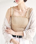 ECRIREのシャーリングキャミ 全体的にシャーリングがあしらわれているコンパクトな作りのキャミ ショート丈なので、ハイウエストのパンツと相性がいいです スクエアネックなので、デコルテラインがきれいに見えるのも嬉しい❤︎