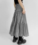 LVEU. さんのギンガムチェックのティアードスカート❤︎ このスカート、バックがレースアップのリボンになっていてとてつもなく可愛いです LVEU. さんのアイテムはモノトーンで着たくなる 大人可愛くて好きです