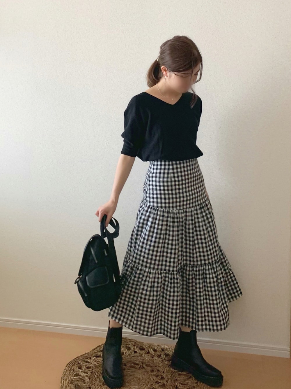 ずんのスカート「Back ribbon gingham check skirt / バックリボンギンガムチェックスカート」を使ったコーディネート