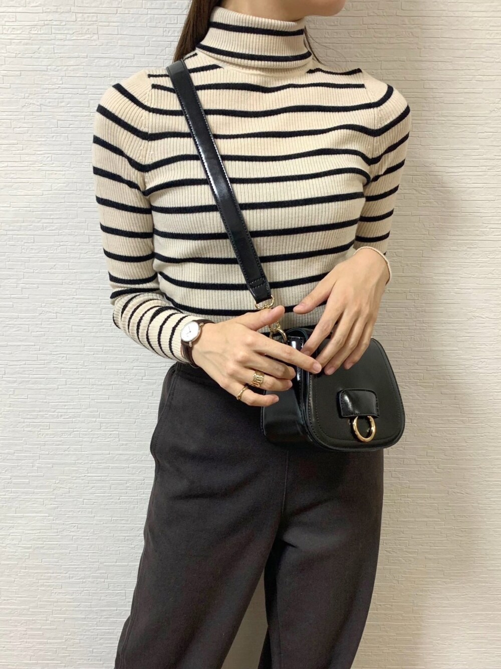 ユニクロ エクストラファインメラノリブタートルニット off white Mサイズ ブラッシュドジャージーストレートパンツ brown Sサイズ 上下ユニクロコーデ 上下ともに、着回ししやすくて便利なアイテムです