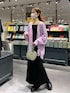 ANGIE 【2023年春夏新色追加】オーバーサイズVネックニットカーディガン ライトパープルのカラーが春っぽくてめっちゃ可愛いカーディガン🌸 軽くてもちふわな肌触り♡♡ 本日1,000円クーポン出てます! 黒のキャミワンピ合わせ大人コーデでで本屋さんに行きました📚