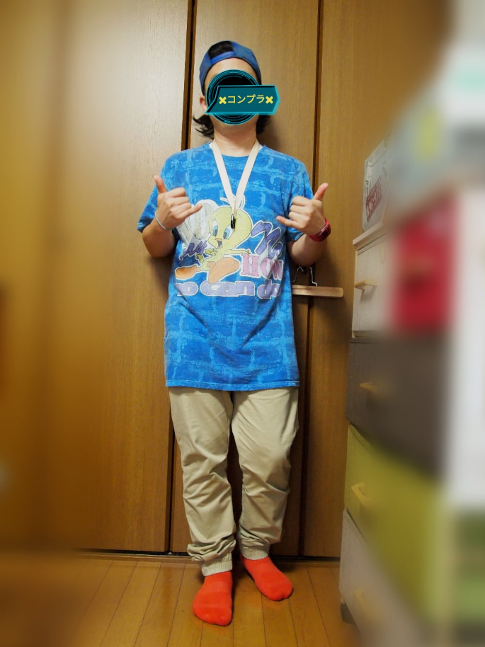 お昼に食べたセブンイレブンのレジ横のカレーパン、 揚げたてで美味しかったなぁ… アメリカンドッグとかと一緒に並んでるんですけど、 結構オススメです♪ 今日のトップスはお気に入りのプリントTシャツ! オーバーサイズかつ柄モノで広く占めてるので、 細めかつシンプルなチノパンで合わせました。 全体的に落ち着いた色合いなので、足元と手首が 派手めの赤アイテムでも、全体的にまとまります。 ◇▼ △ ▼ △ ▼ △ ▼ ◇ 皆様ー!! いつもたくさんの閲覧・いいねをくださり、 誠にありがとうございます!!┏○ペコッ!! こんなアラフォー間近のオジサンでも 「ユーもファッション楽しんじゃいなよ♪」 って言われてるようで… めちゃくちゃ励みや救いになります! 今後ともヨロシクお願いいたします♪ ◇ ▲ ▽ ▲ ▽ ▲ ▽ ▲ ◇