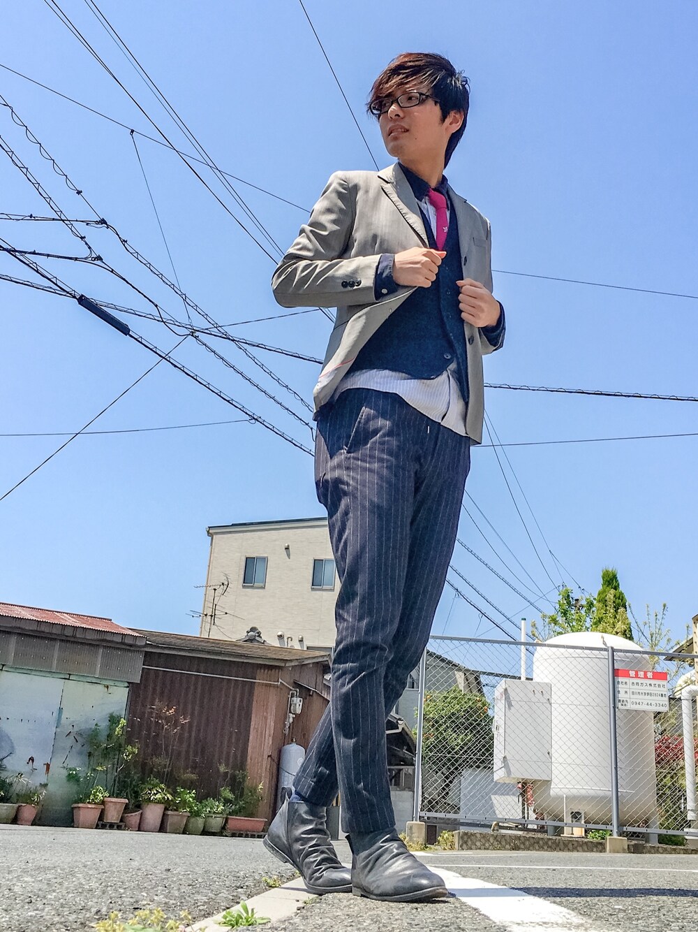 結局ちょいフォーマルしました! でも普通にフォーマルしても面白くないと思ったので、ジャケットはレディースです( ̄▽ ̄) 気づかれるかなーってスリルが楽しいですね(笑) メガネはコーデに合わせたわけじゃなくて、結膜炎が復活してコンタクトがズレるので、今日はメガネ男子ですm(_ _)m ちなみに今日は風が強過ぎて何度も撮り直しました… おかげで顔に少しイラつきが出てたりします…(笑)
