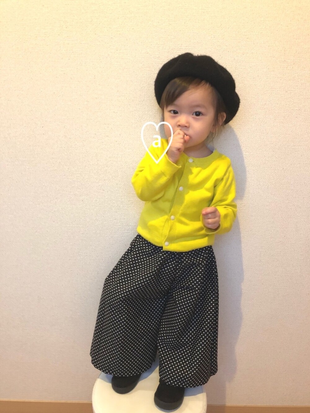 シンプル♡新作ドット柄ワイドパンツ♡ ドット柄が欲しいと思ってたけど着せたことがないから果たして買って着るかなー?とずっと悩んでて…結果♥︎作っちゃいました♡ トップスは寒くて着せていただけのカーデ♡ド派手…