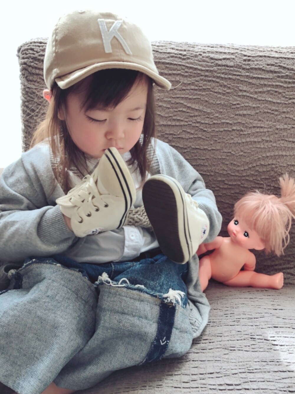 シンプル♡ コンバースを最新コーデで手に履いてみました☺︎ ごめんなさい。嘘つきました♡笑 コンバースフェス♡ぜひ参加させてください☺︎主催者さまよろしくお願いします♡ それよりなにより…メルちゃんの扱いが雑すぎてびっくりするわ笑♡でも寝る時はいつも一緒☺︎☺︎ どんな関係だよ!