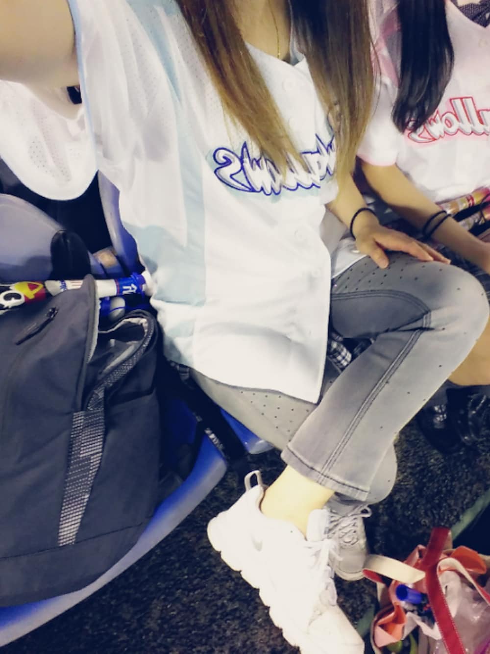 こんばんは!! 今日は神宮球場に行きました。 サヨナラ勝ちでした😃🎵✨ デニムにストーンが付いてます🎵 可愛いんです✨ 自己満足(笑) ユニホームはけっこう前のです。。。