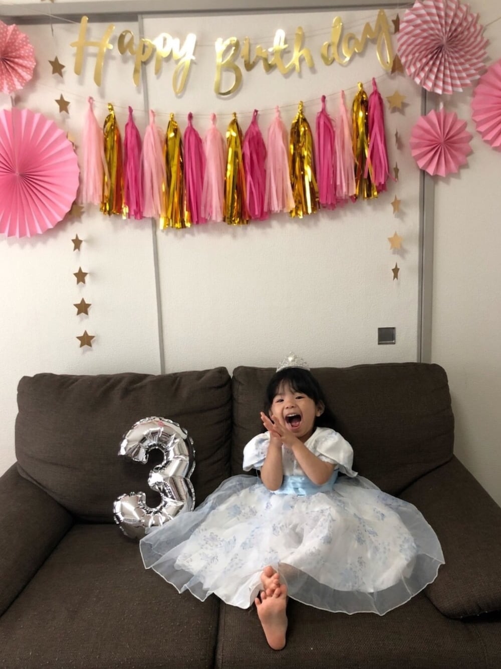 ご覧いただきありがとうございます❤ ♡、save、コメント、フォローもとっても嬉しいです😆✨ かなり遅くなりましたが、、、 Birthday Photo ꒰>ꈊ<ૢ꒱❣︎❣︎ まだまだアンパンマンが好きですが、最近はトトロも好きで毎日のように歌ってるのでトトロのケーキにしましたᙏ̤̫͚ この日はパパが帰ってきてから「Happy Birthday 〜♪」したのでパジャマです😅 ドレスは2歳の誕生日にスタジオでも着せた、お下がりのです❣︎ ガーランドがシルバーだと思ってて、数字もシルバーにしたらガーランドはゴールドでした😂