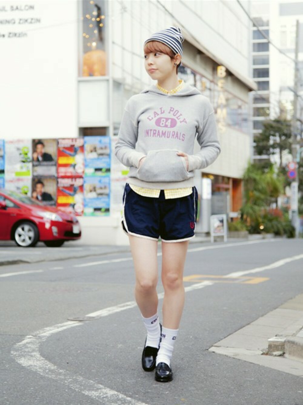 佐野 珠藻(ビームス タイム) スポーティなアイテムにかっちりしたローファーを合わせてアメリカのカレッジスタイルを表現しました! ボーダーのニット帽で可愛らしさも忘れずに♪