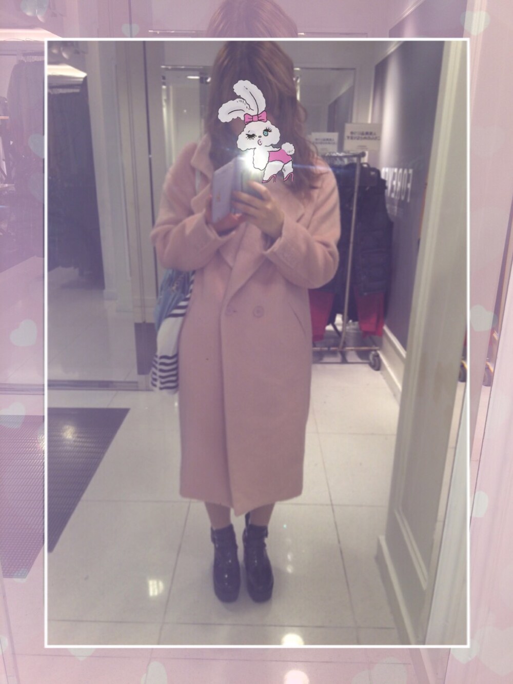 jouetieで買ったおpinkコート💞 やっと欲しいのに出会えた💒💐 温かいし、可愛いし着心地もgood👍🏻 可愛い系も、ふわふわ系も、シンプルなかっこうにも使えそう💖