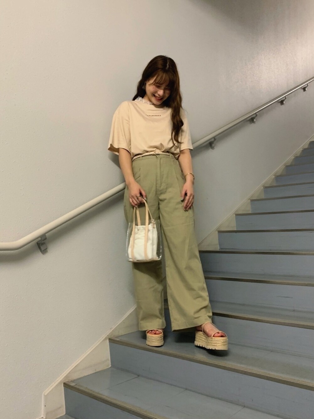 ガーリーコーデです☺︎ 色味も可愛いです🌷 パンツもちょっと大きくて華奢に見えます〜〜⭐️ 小物も可愛いです〜〜 ぜひ、InstagramのプロフィールのURLから商品見れるので見てください!! 他のコーデも見てください〜〜☺︎