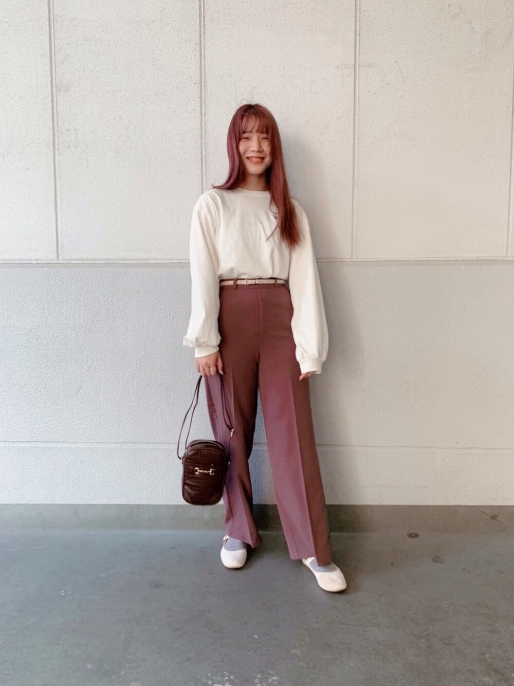 シンプルコーデ〜⭐️ シンプルだけど、お洒落に見える着こなし方です〜☺︎ 可愛いです〜☺︎ パンツはカラー豊富です♪