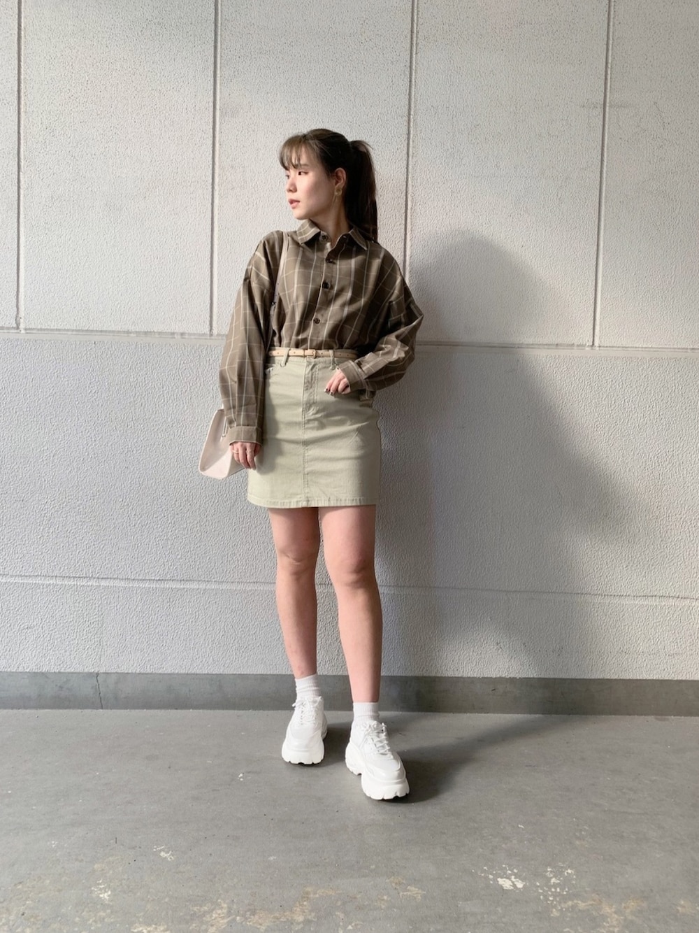 春コーデです!! 色味が可愛いです!! シャツはメンズなんですが、ちょっと大きくて可愛いです〜🌷 全体的にオススメです〜 よかったらInstagramも見てください〜☺︎