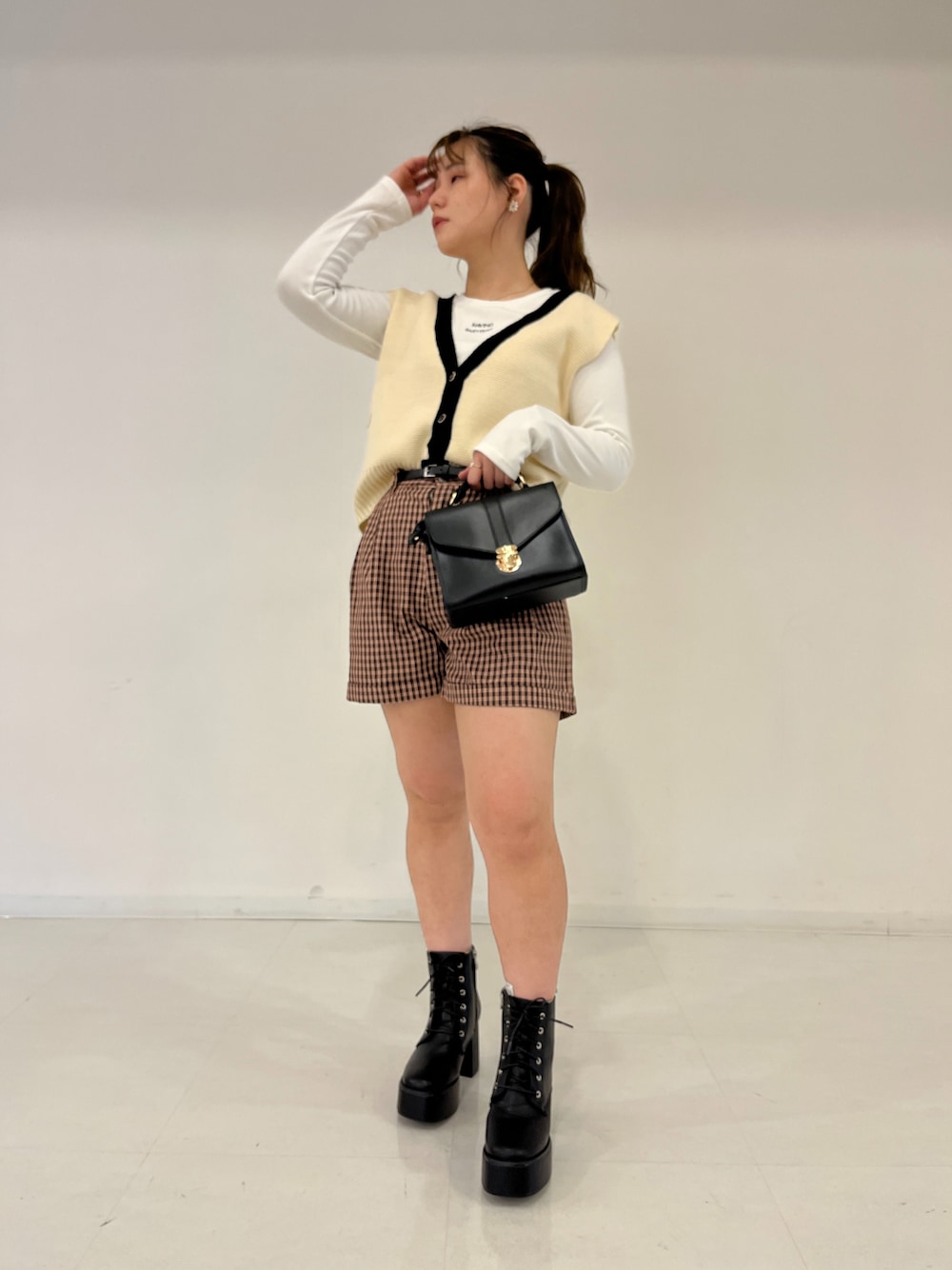 韓国っぽいコーデになってます!☺️ チェックの短パン可愛い~🥰 ベストと相性よくて好きˊᵕˋ♡ Instagramもやってるので見てください @eri4920