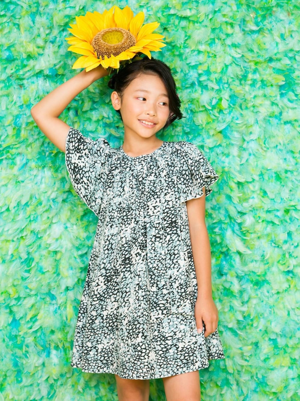 テロっとした生地感で 大人っぽいヒョウ柄だけど ブルーの爽やかなカラーで子供でも奇抜さのないワンピースです❤️