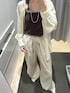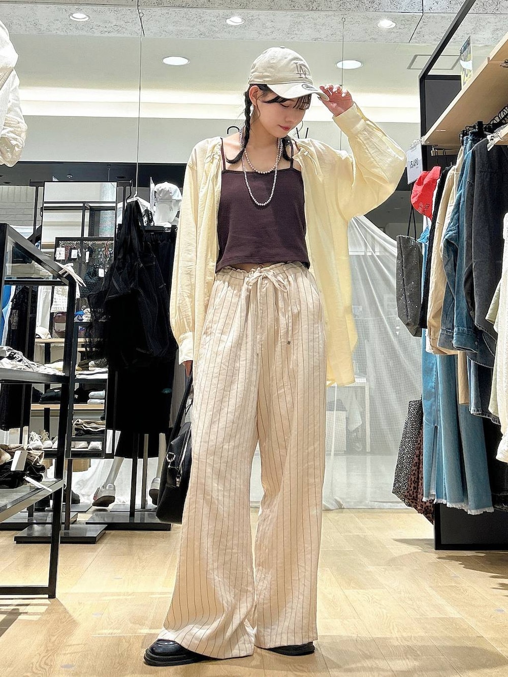 163cm/骨格ナチュラル 1枚でも、羽織としても使える これからの時期にピッタリなシャツ✨ 首元のドロストコードがトレンドぽくて 差別化出来ること間違いなし☝🏻 上半身薄っぺらい骨格ナチュラルは ボトムスにボリュームを持たせることで バランスよく着こなせます◎ パンツは163cmでL着用です。 あえてワンサイズあげてズルっとはくのが今っぽポイント!ウエストは紐仕様なので問題なしです🙆🏻♀️︎
