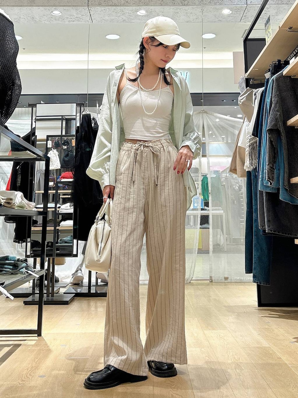 163cm/骨格ナチュラル 1枚でも、羽織としても使える これからの時期にピッタリなシャツ✨ 裏面のギャザーがたっぷりで 裾にかけて広がる形なのがありがたい! 上半身薄っぺらい骨格ナチュラルは ボトムスにボリュームを持たせることで バランスよく着こなせます◎ パンツは163cmでL着用です。 あえてワンサイズあげてズルっとはくのが今っぽポイント!ウエストは紐仕様なので問題なしです🙆🏻♀️︎